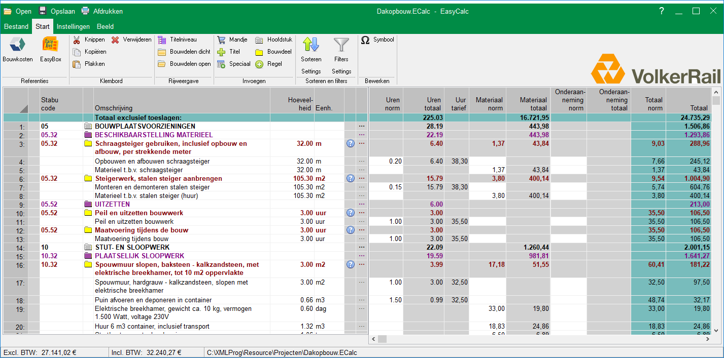 Gemakkelijk, snel & eenvoudig! Daarmee wordt EasyCalc, het begrotingsprogramma voor de bouw, het beste getypeerd. Door de Office look-and-feel is de software prima te combineren met de gebruikelijke Office software. De talloze handige opties zorgen voor een snelle verwerking van de hoeveelheden en bedragen. Dit programma wordt gedragen door een brede gebruikersgroep van o.a. architecten- en adviesbureaus, woningbedrijven en overheid, ZZP-ers en BUKLA aannemers, middelgrote bouwbedrijven etc.