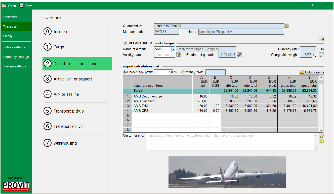 - Diverse matrixen met standaard rekenfunctionaliteit voor het calculeren van cargo & kosten